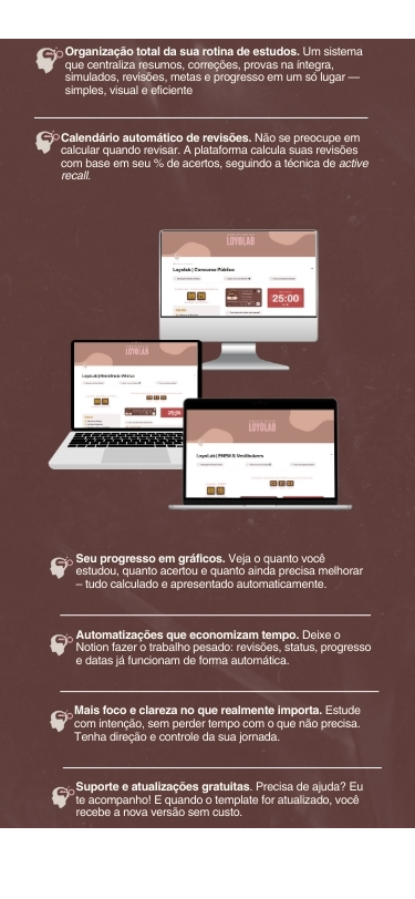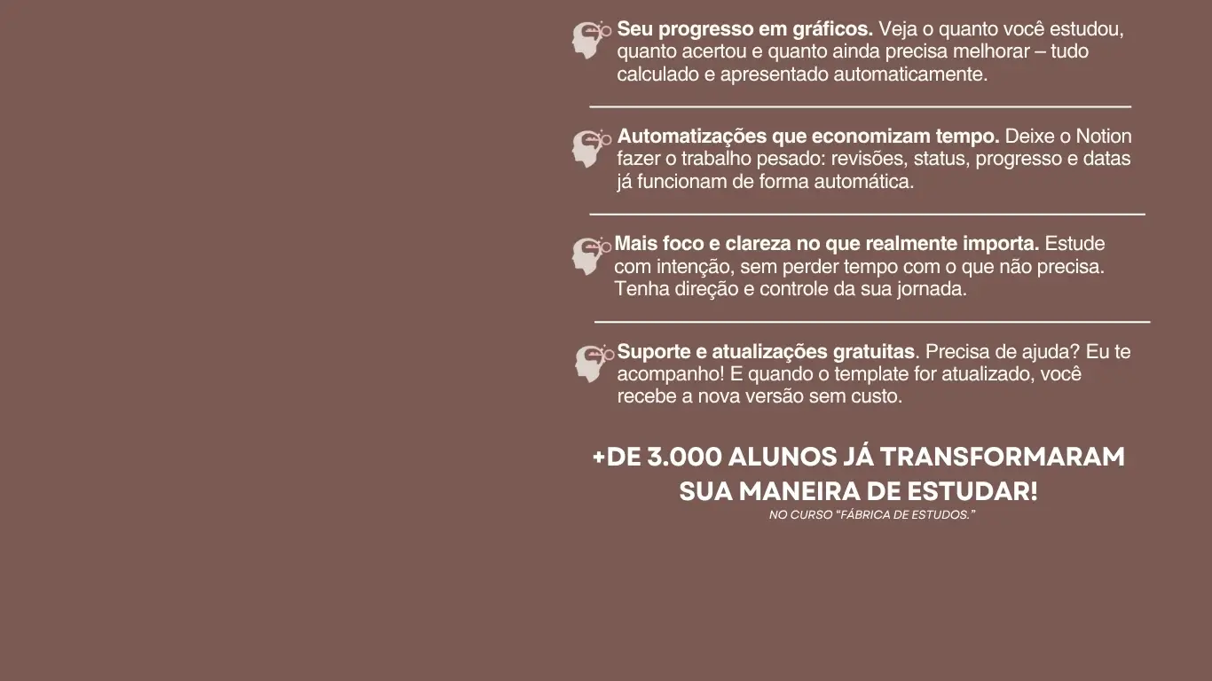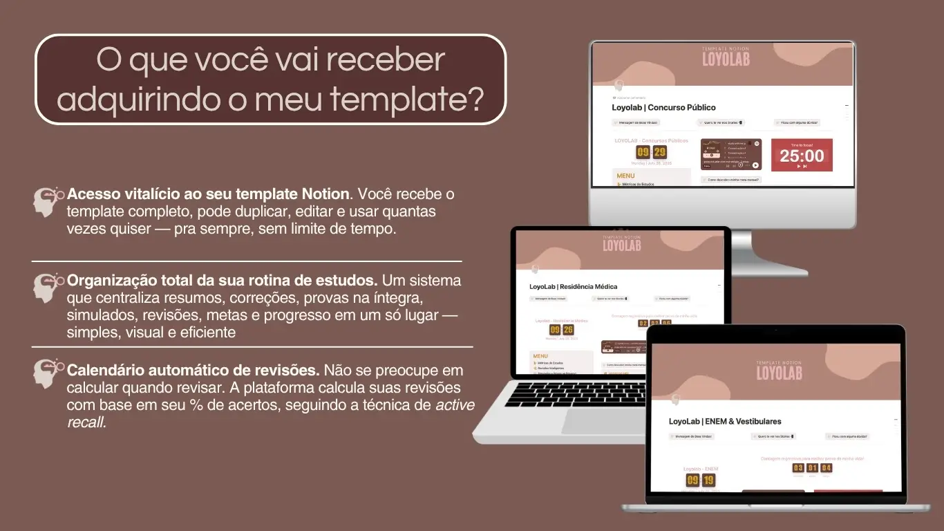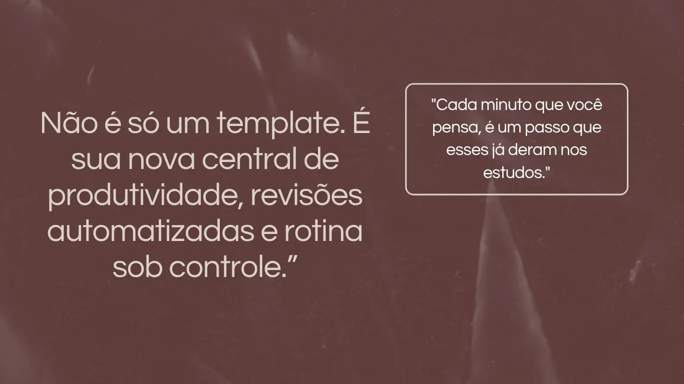 Sim! O template foi pensado para tirar o peso da desorganização. Com ele, você ganha mais foco, clareza do que precisa ser feito e otimiza seu tempo com revisões automáticas.