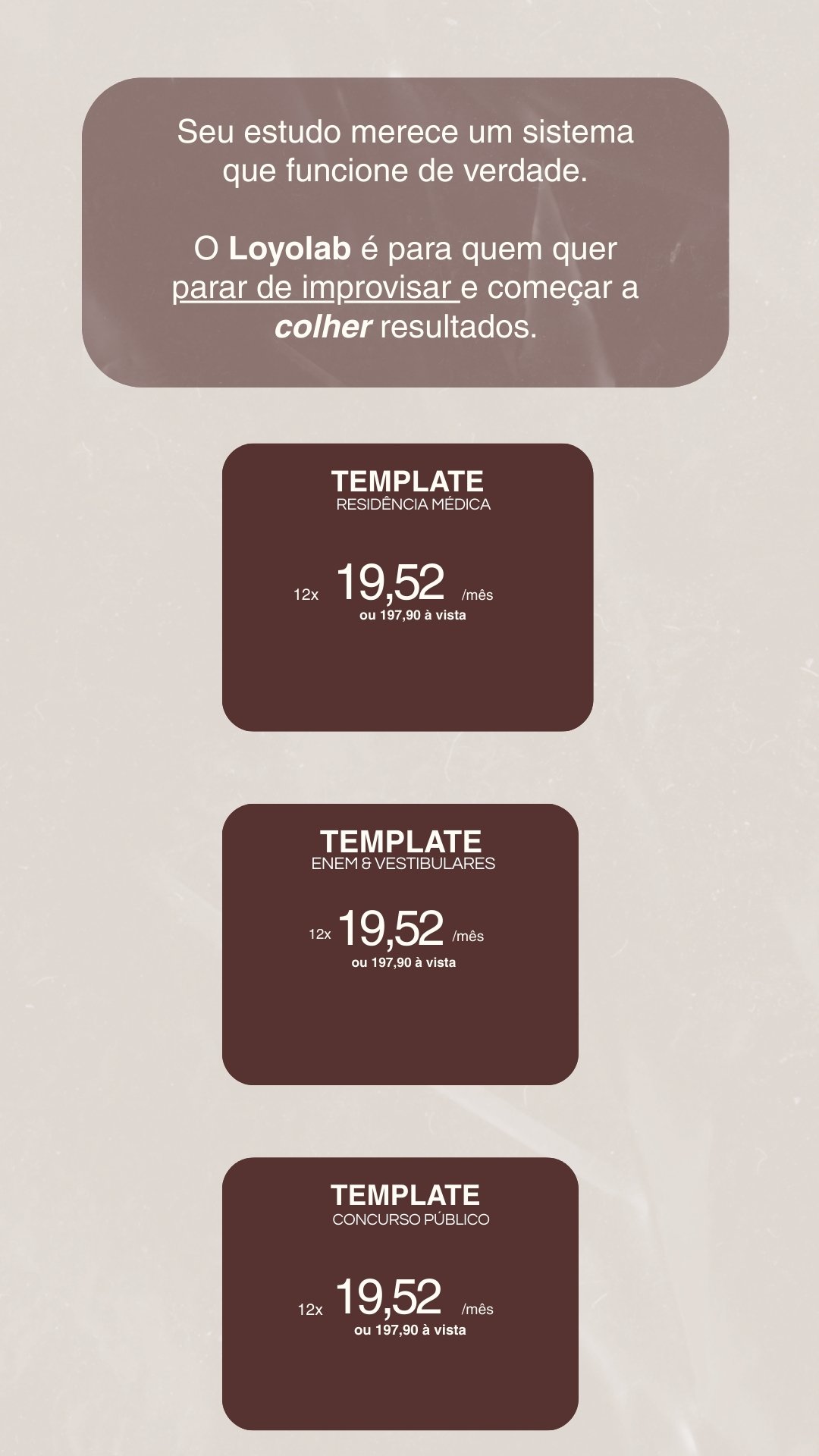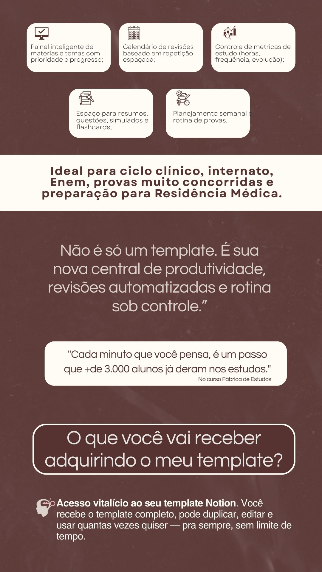 Tenho versões específicas para Medicina, ENEM/Vestibular e também faço templates personalizados para outras áreas. É só escolher o ideal pra você!
